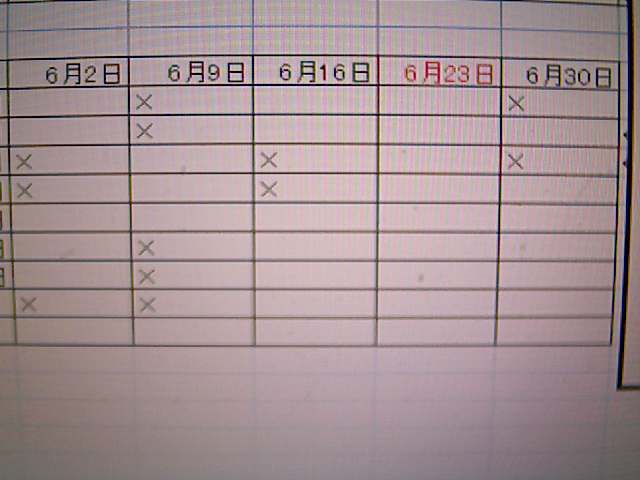 チーム新潟の皆様、こんにちは七子です。 5月14日の18時をもちまして、第2回新潟オフ会の開催日を集計させていただきました。 会の名前はみっくん(文学師範)さんのアイディアを頂きまして 「G-NETにリクエストを皆で送ろう!&ガネカラ ― Doing all Night!―」 と命名しました。 ありがとうございます 画像をご確認ください。 皆様の都合の悪い日に×をつけましたところ、参加表明を頂いた8名が全員都合が悪くなさそうな日がありました奇跡 →6月23日(土)に決定です(^O^) チーム