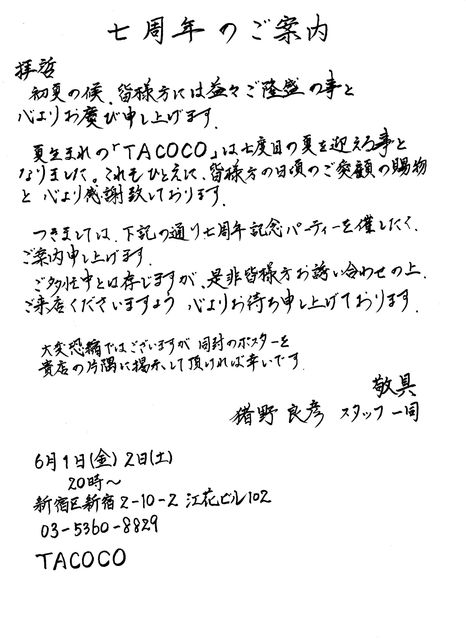 前売りTKT 7,800yen(inc VAT) plus one drink fee