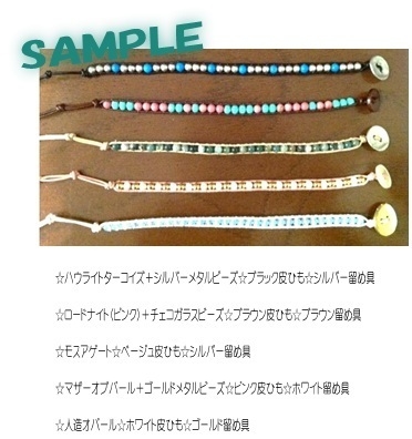 天然石を使ったレザーラップブレスレット作り ハリウッドセレブや芸能人に大人気のレザーラップブレスレット!! レッスンでは、天然石を使って1連のブレスレットを作ります。 気取らないアイテムで、そのままシングルで付けても重ね付けしてもオシャレ☆ メンズにも人気のデザインですので彼へのプレゼントにも出来ます♡ 様々な種類の天然石やビーズ、革ひも、留め具をご用意しておりますので、 自分だけのオリジナルブレスレットがお作りいただけます。 ■日時:6月1日(金)10:00〜12:00 ■場所: