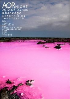 管理人様、告知失礼いたします。 AOR NIGHT 2012.06.03.sun @bar edge START/18:00 1000YEN/1D Djs... GOD BIRD(STEREO RECORDS) EIJI ARAN(from KYOTO) MATSUBARA IMARU KOMATSU SION NABE AK OKIMONO TOMOMI 問答無用のAOR NIGHT!!! Djがそれぞれの解釈で選曲するAOR..... 遊びに来る皆様もお手持ちのAOR音源をお持ちください!一緒にDJブースに立ち、あなたの お気に入りのAORをフロアのみんなとシェアしましょーーー!