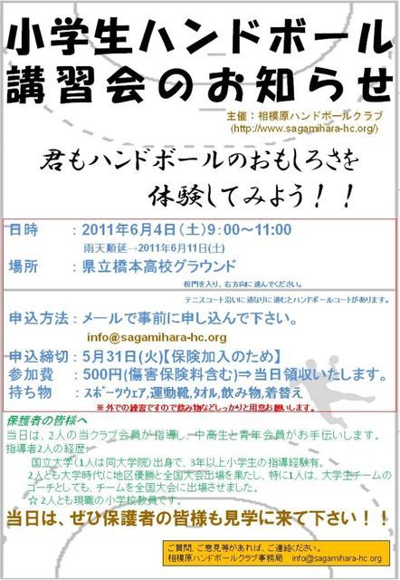 事前にメールでお申し込みください。 info@sagamihara-hc.org