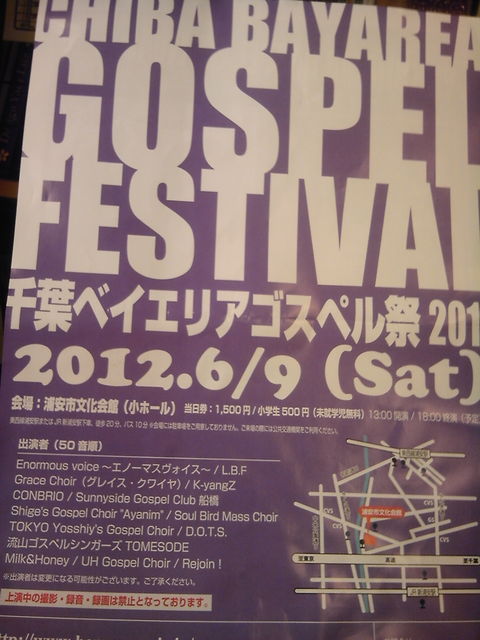 コミュのみなさま 管理人さま イベントの告知させて頂き、ありがとうございます 6月9日(土)の午後 浦安市文化会館にて、千葉ベイエリア・ゴスペル祭を開催いたします http://www.happy-music.jp/ 総勢14組のゴスペルクワイアが参加し、渾身のゴスペルをお届けいたします ロックの日にゴスペルはいかがでしょーか 浦安市で活動中のゴスペルサークル『UH Gosrel Choir』さんも出演されますよー その他、船橋や流山、都内で活動中のクワイアも