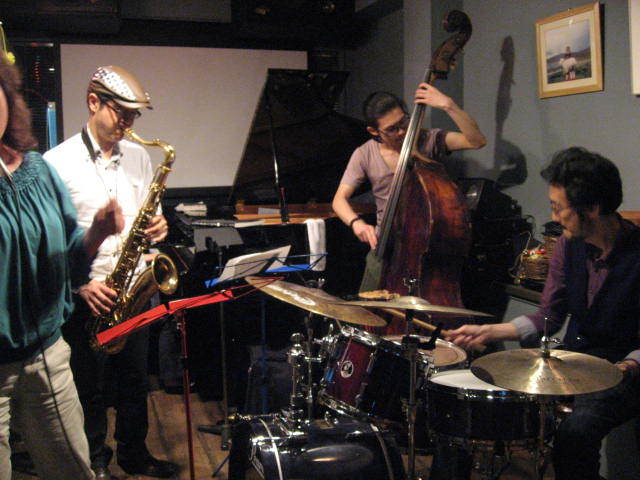 月に一度のジャムセッションです。 この日は、雨の予報が出ています。そろそろ、梅雨入りなのですね。 雨でもめげずに、楽器を持って集合です。 セッションこそ、ジャズの醍醐味です。一人の練習では行き詰まってしまうことも、プロと演奏することで、糸口が見つかることもあります。 人前で演奏する快感と、照れくささと、ちょっと恥をかいてみるのも上達への一歩! 少しの勇気と楽器を持って、お集まりください。お待ちしています。 宮田よし(Ts) http://www.miyatayoshi.com/ 千葉史絵(P) http://blogs.yahoo.co.jp/hibi_
