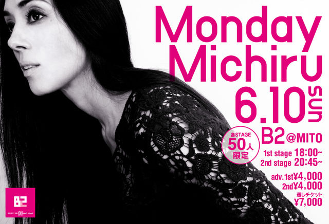 2012年6月10日(日) Monday満ちる 各ステージ50人限定 1st 18:00 / 2nd 20:45 1st ¥4,000 + 飲食代 2nd \4,000 + 飲食代 通し ¥7,000 + 飲食代 Monday Michiru (Vo) 鈴木 禎久(G) Guest DJ : 箭内 健一(Soul Source Production) 日本でのアシッド・ジャズの先駆者として知られ、アンダーグラウンド・クラブシーンにおいては数少ない女性のひとり。プロデュースも手掛けるレアな女性シンガー・ソングライター【Monday Michiru】。彼女のライブをお楽しみ下さい。 ご予約は 029-291-4282(ビーセカンド)