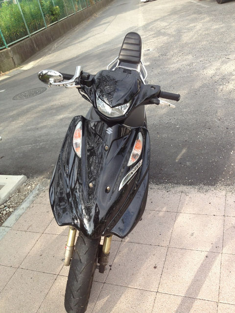 一通りカスタムしてある規制前V125Gです。 調子が良いときは100km程度でます。 値引きは出来ませんのであしからず。 まずは気軽にメッセください。 ・メーカー名: SUZUKI ・車名: アドレスV125G ・年式: K7 ・2st/4st: 4st ・排気量: 125 ・色: 黒 ・自走: 可能 ・走行距離: 約6500 ・車検/自賠責の有無: 再来年2月 ・事故歴: 不明 ・キズや不具合の有無:エアロに、塗装はげ。エアロマスク上部割れ。 メーター接触不良 ・カスタム箇所や装備: フルエアロ 前後ZZ12インチ ミラ
