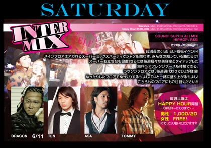 今週末、ELF土曜日のHOTなEVENT情報です 先日1000人を動員した1周年からまだ熱も冷めない週末土曜日 土曜日のCLUB ELFは...ELF INTER MIX超満員のCLUB ELF看板EVENT 今回はGUEST DJにDJ DRAGONを迎えてお送りします。 メインフロアでは新旧問わないアガれる曲が中心のパーティーフロア 最新のビルボードヒットなどアゲチューンからしっとり聴けるR&B、HOUSE NATION、J-POP、TRANCEまでかかるオールジャンルスタイルでお送りします!! お立ち台も設置 そして毎週都内で超人気の様々