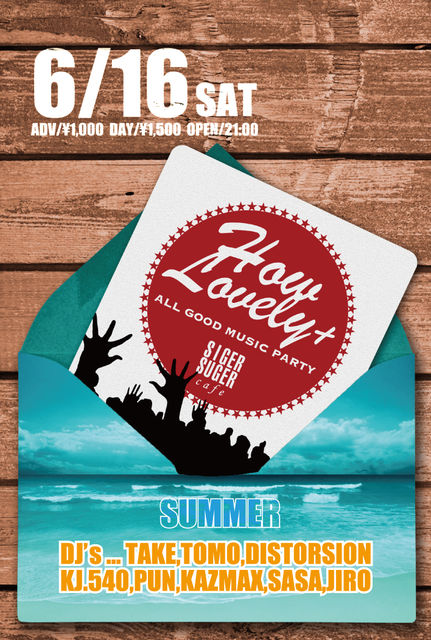 2012.06.16(SAT) HOW LOVELY!!+ [Summer] (All Genre) @SIGER SUGER Cafe 苫小牧市大町1-4-22 あらいビル2F ? 0144-37-8078 http://mixi.jp/view_community.pl?id=4482781 OPEN 21:00 前売 \1,000 当日 \1,500 ※先着で、DJKAZMAX MIXCD プレゼント!! [DJs] Take(HARD HOUSE) Tomo(HARD HOUSE) distorSioN(INDIE DANCE) kj.540(HOUSE) Pun(R&B/HIPHOP) Kazmax(R&B) Sasa(R&B) Jiro(R&B) 苫小牧の元祖 ALL GENRE PARTY 「ハウラブ」こと、 [HOW LOVELY!!@SIGER SUGER Cafe] ♪