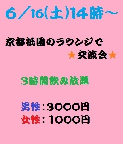 6月16日は14時〜 京都の祇園で 友達作りの交流会です!(^^) 私たちのミッションは 出会いを通じて、参加者の人生に貢献すること です(^^) 軽い男女の出会いではなく、 仲間との出会い、 知識との出会い、 新しいアイディアとの出会い、 パートナーとの出会い そういった全ての出会いを通じて、 プラスな人生を送って欲しいと心から願っています! 初めて参加される方には、もっと詳しく会の様子を載せています。 こちらをご覧ください http://mixi.jp/vie
