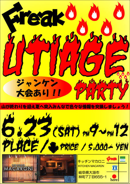11/12シーズンの打ち上げ!! FREAKライダー、スタッフと『キッチンマカロニ』のおいしいイタリアン&フリードリンク(ビール、カクテル、ソフトドリンク)で盛り上がりましょう!! 豪華賞品が当たるジャンケン大会やります!!