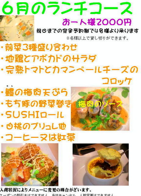 まいど、すぐ満席になるキラ女☆ランチ会 今月もやりますよー 6月は久々に、「アラフォーランチ会」にしようかと といっても、35歳以上で、上は制限ありやせん(笑) いつものように、ゆっくりしゃべりたいんで、ねーさん入れて 限定6名にて 酸いも甘いも経験済みのアラフォー女子。 まだまだ独身、女盛りアラフォー女子。 育児に疲れぎみだけど、輝いていたいアラフォー女子。 結婚してても、トキメキたい?アラフォー女子。 人生折り返し地点。何か野望をもってるアラフォー女子。 仕事、育児、家族