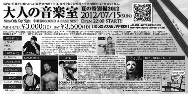 FEE: MEN ADV 3000yen(2D) W/F 3000yen(1D) DAY 3000yen