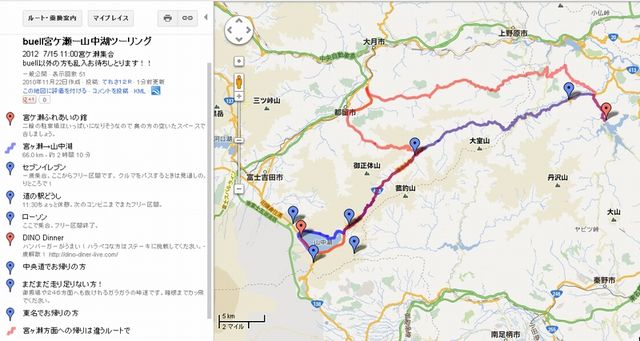 梅雨明け記念!!2年振りに宮ヶ瀬でBUELLミーティングを開催します。 日時:7月15日 日曜日 10時集合 集合場所:神奈川県 宮ヶ瀬湖 鳥居原ふれあいの館 (北側の駐車場) 行き先:山中湖 DINO DINER(ハンバーガー&ステーキ) ※当初の予定通りです http://dino-diner-live.com/ ルート 道志みちはほぼフリー走行です。無理な追い越し注意してください。 道の駅11:30くらいまで休憩 → 山中湖12時過ぎくらいに到着 → 流れ解散 https://maps.google.co.jp/maps/ms?hl=ja&gl=jp&ptab=2&ie=UTF8&oe=UTF8