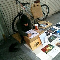 暖かくなってから やっているのですが 毎週木曜22時位から 吉祥寺のサンロード辺りで ダラダラとギターの人と二人で 音楽やったり絵を並べて売っています。 雨降ったり予定が忙しかったりで休止あり。 出没したら書き込むトピック。 そこでお会いした人もここで挨拶よろしくです^^ ※仕事ではないので本当に適当な感じです。 ラクガキ帳見たい人、常にあります。 絵の話とか音の話とか出来たら良いな。 ただのオタクですから出会い系は回れ右で。 貧相な外見と貧乏な僕を見ても一声下さい