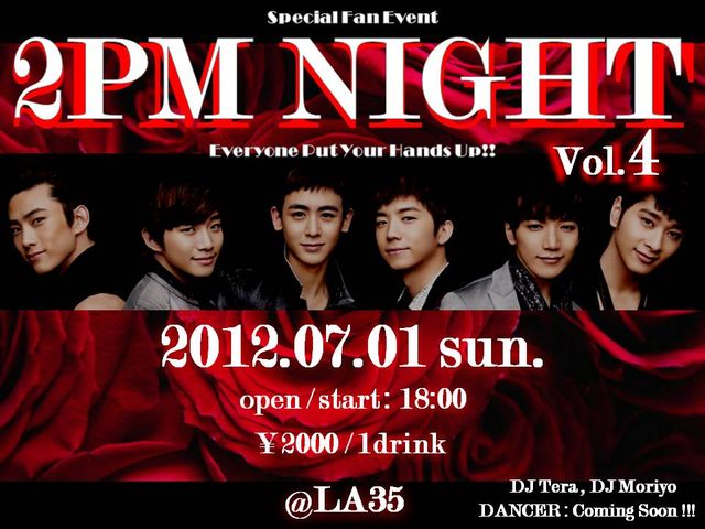 【飛び入りOK!!】 当日の飛び入り参加OKにしました♪ 予定が空いた方、六本木にいる方大歓迎でーすo(^-^)o荒ぶるぞーい!! HOTTESTの皆さん長らくお待たせしましたー(^O^) 毎回100名以上の熱ーいペンさんが集まって荒ぶるw『2PM NIGHT』第4弾が開催決定でーす\(^o^)/ 武道館公演&追加横アリ公演は終わってしましましたが、火のついたHOTTESTの勢いは止まりませーん!! 武道館・横アリで完全燃焼した方も、チケット取れなかった方も、初心者ぺんも、熱きHOTTESTは全員集合でーす(^o^)/ 【イベント内容】 クラブを