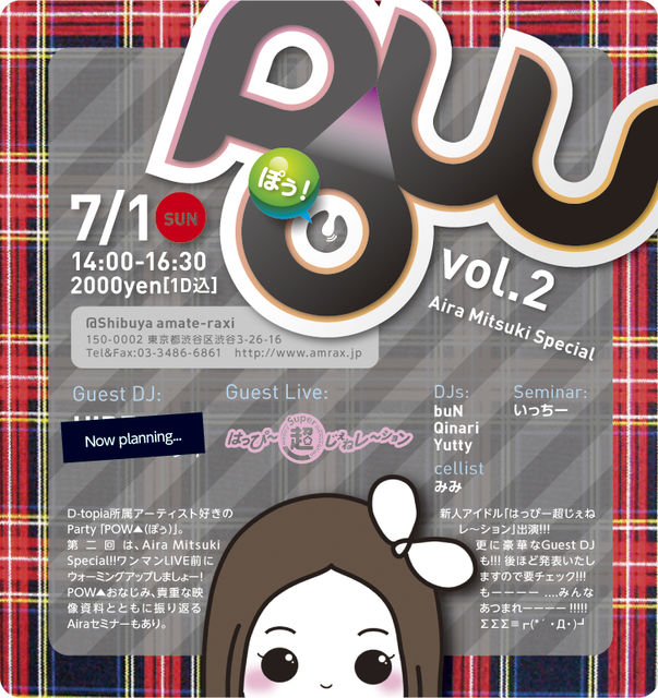 開催日:2012/07/01(日) 開場・開演時間:14:00 会場:AMATE-RAXI 料金:\1,500※ 1ドリンク別