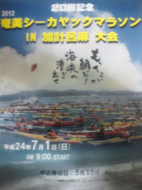 今年の奄美シーカヤックマラソンの日程が発表されました。 7月1日(日) 受付開始は4月2日(月) 詳細がわかり次第、随時書き足していきます。 ◆◆ 奄美シーカヤックマラソンin加計呂麻大会事務局 ◆◆ http://www.e-sports.jp/sk_kakeroma