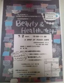 管理人様 この場をお借りしてお知らせをさせていただき ありがとうございます 安佐北区落合にあるカフェで アンチエイジングな Beauty&Healthミニセミナー をします 場 所:「WINDS OF PEACE CAFE」 広島市安佐北区落合二丁目19-5 082-824-7033 日 時:7/2(月) 10:00〜11:30 参加費:1,000円(ワンドリンク付き) もれなくリラックスアロマスプレープレゼント カラダの中から&外からアンチエイジング