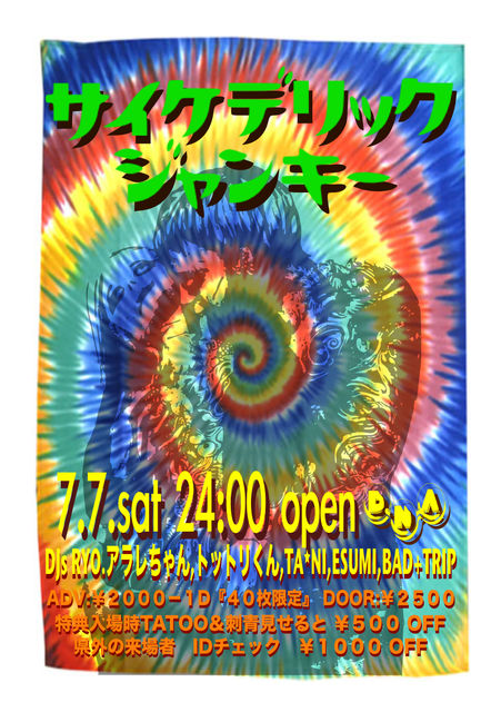 気が付けば管理人にww 管理人2kdです!! 知らない間に託されてました! なので今日から活用させて頂きます 7月7日『七夕』 鳥取市DNAにて、サイケオンリーパーティーやります!! 地元のローカルDJのみですが、みんなで楽しみましょうーw 近隣の県の方が、ゆっくり遊びに来れるよう。 なんと24:00〜スタートと遅く始まり朝まで楽しめるように考えました。 しかも、交通費などかかると思い。 来店されましたら、県外の現住所のIDをお持ちの方は ¥1,000−OFFに もしくは、県内の来場