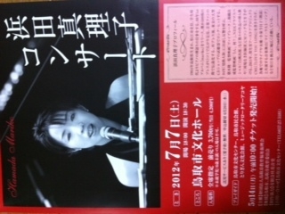 はじめまして。管理人さま、告知失礼いたします。 浜田真理子さんの初の鳥取での七夕ライブとなります。 まだ生で歌声を聴いたことがない方も含めて、 ぜひ、お越しいただきたいと思います。 とき:2012年7月7日(土) 開場18:00 開演18:30 ところ:鳥取市文化ホール (鳥取市吉方温泉3丁目701) 入場料:全席指定前売り3,700円 当日4,200円 ※未就学児(6歳未満)の入場不可 託児サービスあり<要予約・無料/申込締切6月20日(水)> プレイガイド: 鳥取市文化センター(0857-27-5181)