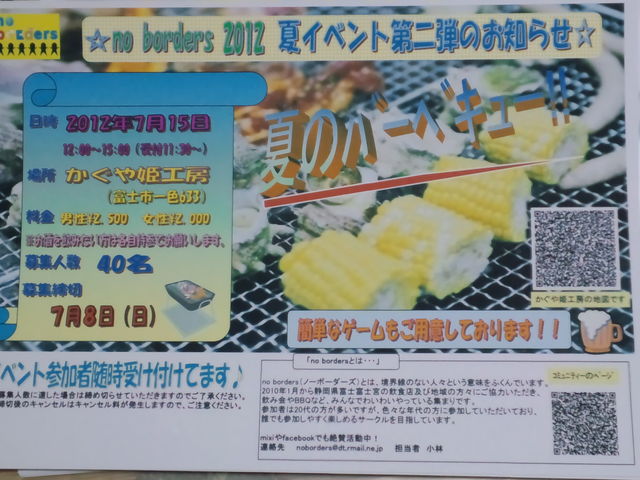 まずは夏の企画第一弾、夏の飲み会に参加された皆様ありがとうございました 37名と定員を超える多数の方にご参加いただき、夏の企画第一弾といたしましては幸先のよいスタートを切ることをでき、初参加者も多く、夏らしい飲み会になったと思いますありがとうございました さて、野外企画をお待ちの皆様 お待たせしました 夏の目玉企画、第二弾summer BBQのお知らせです 今回のバーベキューは、「40人限定」のバーベキューです笑 場所は雨でも大丈夫な場所です