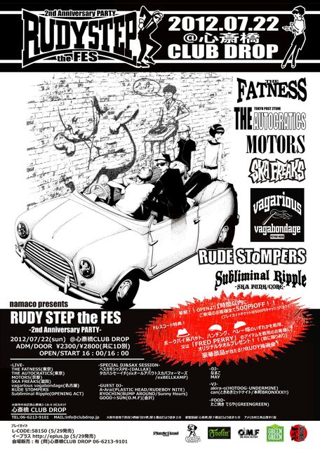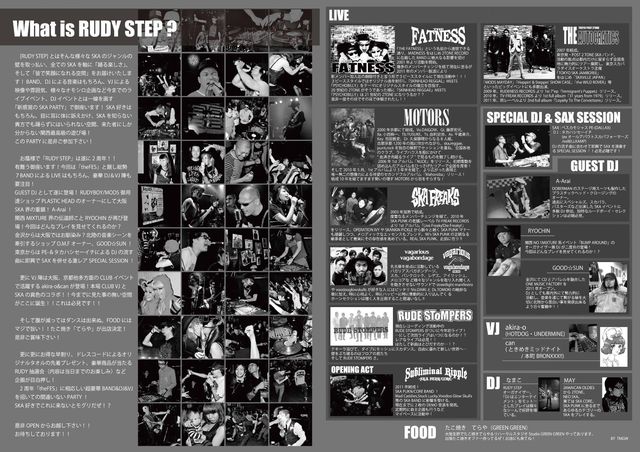 管理人様貴重なスペース失礼致します。 大阪で開催される全てのSKA好き、そして音楽好きに送る新感覚SKA PARTY!! 「What is RUDY STEP」 1950年代、ジャマイカである音楽が生まれた。その音楽を聴くと酒が旨くなり自然と体が動いてしまう。刺激的で宗教的なビート、軽快でパワー溢れるサウンドに人々は魅了され毎夜ビールを片手に踊り明かした。 その音楽とは「SKA」である。 時代が移り変わると共に「SKA」もまた様々なその時代背景を写しながらスタイルを変化/進化させ、世界へと広まっていく。1960年代にはROCKSTEADY、REGGAE。