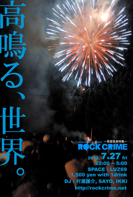 ROCK CRIME 今回はロンドン五輪開催ということで英国音楽をパワープレイしていきます。 新旧入り乱れたUK MUSICをはじめとした世界のロックをお楽しみください! ■2012.7.27 fri ■22:00〜5:00 ■SPACE:LUZ69 ■1,500yen 1drink付 ■DJ:村瀬謙介, SAYO, IKKI ★★ HP★★ http://rockcrime.net/ ★★ ROCK CRIME Facebook Page ★★ http://www.facebook.com/pages/ROCK-CRIME/212552058768058 ★★ スピンオフ企画「ROCK CRIME LIVE」をニコ生で配信!★★ http://com.nicovideo.jp/community/co1310205 ロック
