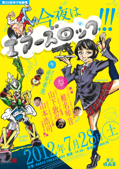 第23回 米子映画宴 『今夜はエアーズロック』開催決定! ガイナックス初の実写テレビシリーズ、脱力ヒーローコメディ「エアーズロック」が豪華ゲストと共に上陸! 果たしてその内容とは、「感覚戦士ゴカンファイブ」とは一体何なのか!? BSSの放送直前に要チェック!! ■ゲスト 山下敦弘(「エアーズロック」監督) 山本浩司(「エアーズロック」ゴカンレッド・赤井一 役)※出演予定 椎名琴音(「エアーズロック」ゴカンピーチ・桜川桃花 役) ■MC 赤井孝美(株式会社ガイナックス) ■日時 2012年