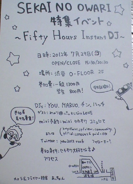 セカオワ好きの皆さんで集まって楽しく踊れたらなと