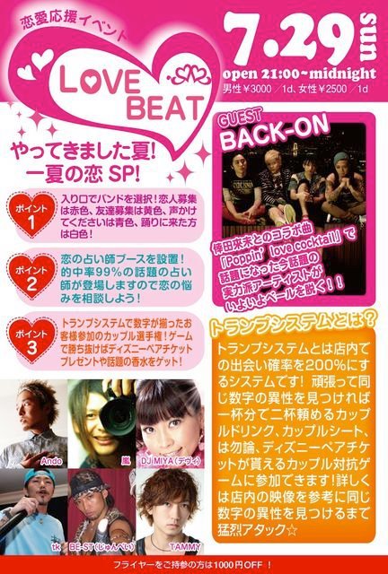 ※入場の際に1DRINK代別途要。