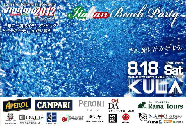 2006年から始まったこのパーティは今年で7回目を迎え、去年もたくさんの方が夏一番のイタリアンビックビーチパーティを楽しんでいただきました。