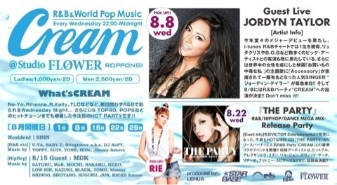 告知失礼します。 エントランスで ■ヨッピーのゲストのヨッピー■ と言っていただければ、誰でも何人でも 特別ディスカウント料金で入場できます ★★★★★★★★★★★★★★★ ※ゲストで入場された方にはこんな特典 ■女性は1000円で3DRINK!! ■男性は破格の2000/2D ★★★★★★★★★★★★★★★ 個別ゲスト希望の人はメッセージお待ちしてます 「CREAM」@六本木FLOWER 毎週木曜日 "FRESH" の兄弟イベント! ! 六本木