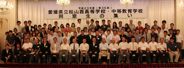同窓生の皆様に置かれましてはますますご清祥の事とお喜び申し上げます。 さて平成24年度第36回同窓生の集い(同窓会総会及び懇親会)を下記の要領で開催いたします。 ご多忙中と存じますが多数お誘い合わせの上、ご出席いただきますようご案内申し上げます。 記 1:日時 平成24年8月14日(火) 18:00〜受付 18:30〜開会 2:会場 国際ホテル松山 3階 松山市一番町1-13 TEL 089-932-5111 3:会費 3000円(当日集金) (卒業後4年以内の方は2000円) 4:お問い合わせ 松山西中等教育学校 TEL 089-922-8