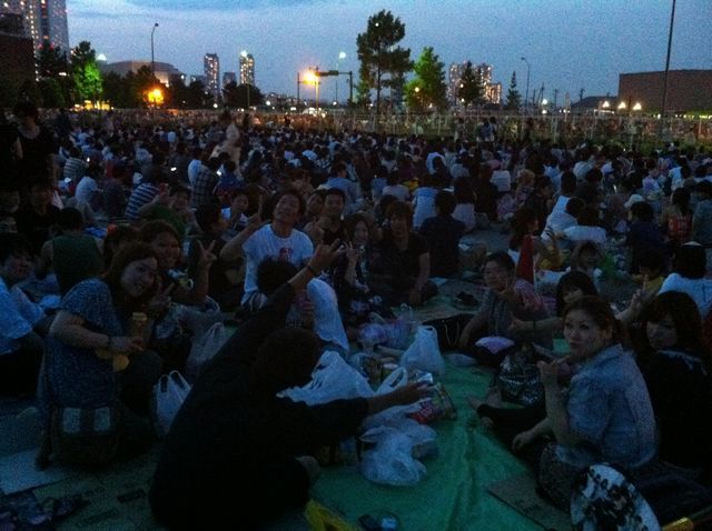 明日の予定 まずチケットまだ買ってない人は ローソンに買いに行きましょう。 たぶん現地でも売ると思いますが、 事前に買って行ったほうがいいです。 昼から席取り参加してくれる人は 去年と同じですが 臨港パークの入口が13時に開きます。 たぶん12時すぎから入口付近に列ができてると思います。 適当に並んでてください。 熱いので熱射病に気をつけて、 門が開いたら 入口でゴミ袋(それが自分のシート代わり)を 受け取って中に入ります。 目的の場所(イカリオブジェ付近)で陣取