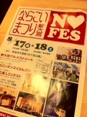 新大宮ならこい祭り2012 大人気の新大宮グルメストリートや、特設ステージが設置され、ゆかた美人コンテストやダンスなどのステージパフォーマンスが開催されます! 開催日 2012年8月17日(金)17:00〜21:30 2012年8月18日(土)11:00〜21:30 開催場所 奈良市大宮町6丁目 「6丁目公園」 新大宮駅から徒歩1分 ホームページ http://narakoi.jp/ グルメストリートに出店するお店の方のブログ http://blog.livedoor.jp/l_oiseau_bleu/archives/1752177.html 新大宮ならこい祭り 夏の陣2011 http://daichangm.exbl