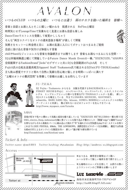 DJ「Avalonian DJ's SAWA(tottori),FU-TSUKA(osaka)」