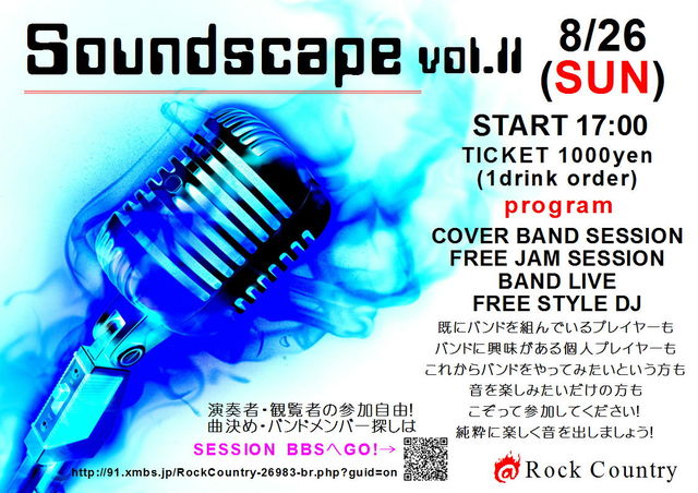 毎回大きな盛り上がりを見せるプレイヤーズコミュニケーションイベント第11弾! START 17:00 TICKET 1000yen(1drink order) 内容 ☆曲決めセッション ☆ジャムセッション ☆フリースタイルDJ ☆バンドLIVE etc... 既にバンドを組んでいるプレイヤーも バンドに興味がある個人プレイヤーも これからバンドをやってみたいという方も 音を楽しみたいだけの方も こぞって参加してください! 純粋に楽しく音を出しましょう! 演奏者・観覧者の参加自由! 曲決め・バンドメンバー探しは SESSION BBSへGO! http://91.xmbs.jp/Rock