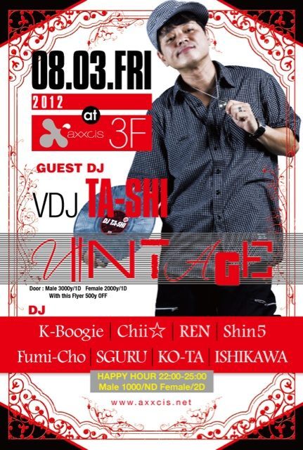 [HAPPY HOUR: 22:00-25:00] MEN: 1,000YEN/ND WOMEN: 1,000YEN/2D