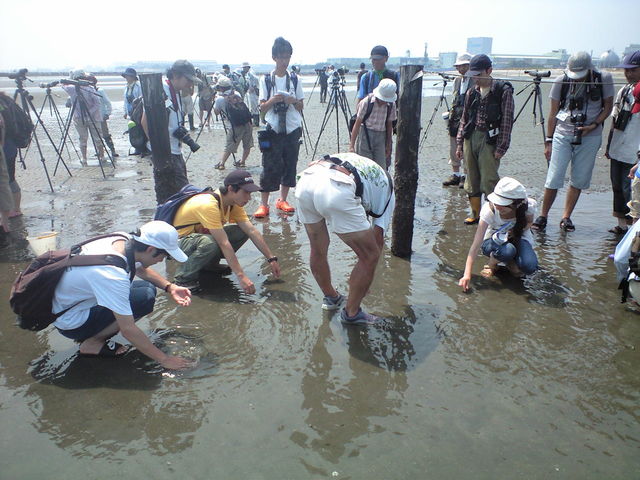 ●探鳥会名:三番瀬定例+Young探鳥会 日付:2012年8月5日(日) 履物:長靴orサンダル 弁当:要・飲み物必須 集合:ふなばし三番瀬海浜公園バス停 午前10時 交通:JR京葉線二俣新町駅よりバスまたは徒歩25分。 または京成船橋駅南口(JR船橋駅徒歩2分)よりふなばし三番瀬海浜公園行きバス乗車、終点下車。 注意:日陰がまったくありませんので、帽子と水筒は熱中症対策の自己責任として必ずお持ち下さい。長靴かぬれても良い靴があると便利です。 解散:午後2時頃 担当:古樹恵他 参加費:200円 持ち物:帽子、日焼け対策、お弁当、飲み物