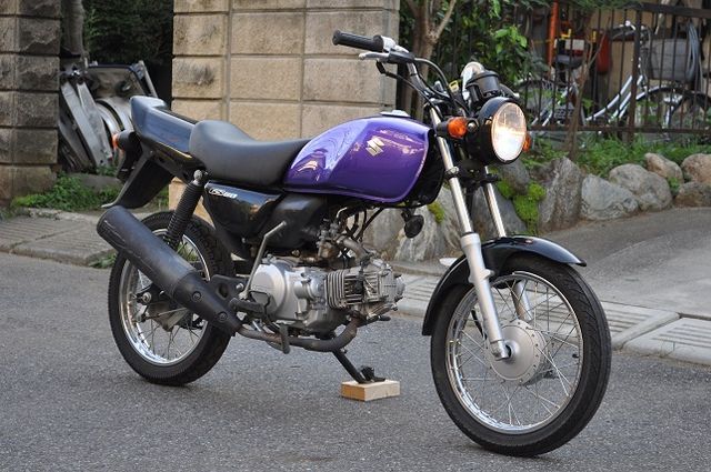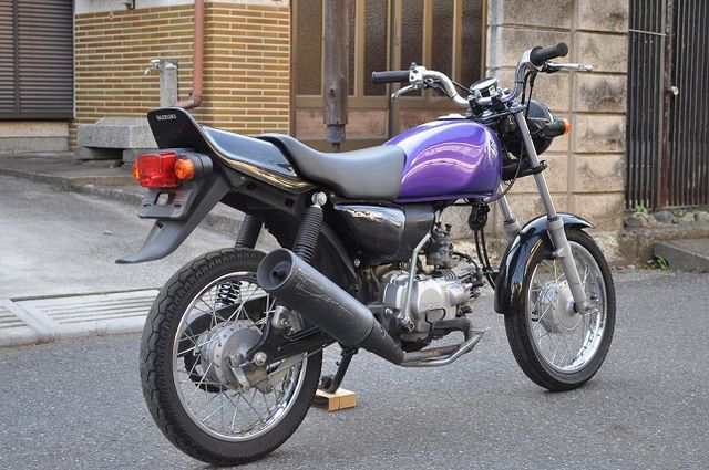 【メーカー】 スズキ 【車名/グレード】 GS50 【排気量】 50CC 【年式】 不明 【カラー】紫 【走行距離】社外メーターから戻したので不明 【事故暦】ステアリングストッパー綺麗です 手放しで真っ直ぐ走ります 【自走】 可能(ナンバー取得・自賠責加入後に自己責任で) 【自己評価】 7 フルノーマルの車体です。 現在特に問題なく乗っております。 走行距離は不明ですが、車体の感じから2000キロ程度だと思います。 売れなければオールペンしたりして遊ぼうと思ってます。 売り急ぎではないので、興味のあ