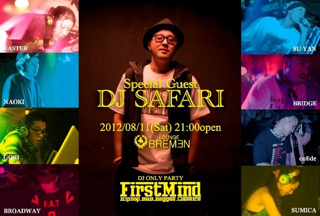 ◆◇◆◇◆◇◆◇◆◇◆◇◆◇◆◇ m-trap Present DJ ONLY PARTY 【First'Mind】 〜HIPHOP/R&B/REGGAE/CLASSICS〜 SPECIAL GUEST 【DJ SAFARI】 ◆◇◆◇◆◇◆◇◆◇◆◇◆◇◆◇ ↓↓↓詳細は下記のとおりです。↓↓↓ 【場所】 @ LOUNGE BREMEN 長野県伊那市御園85-7(R153沿いアイフル上) 【日時】 2012年08月11日(土) 21:00スタート 【入場】 ADV:¥2000(1D) DOOR:¥2500(1D) 《23:00までに入ると?ドリンク》 (フライヤーorMIXI