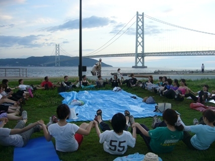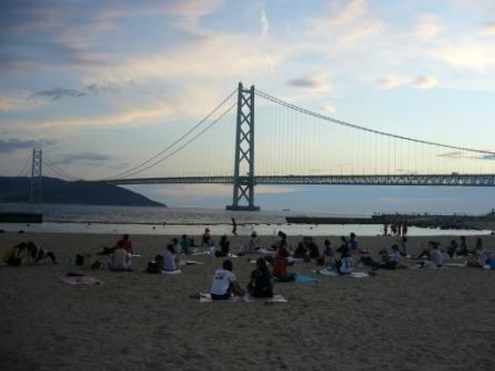 ◆◇◆◇◆◇◆◇◆◇◆◇◆◇ 東日本大震災復興支援イベント ビーチヨガINアジュール舞子 ◆◇◆◇◆◇◆◇◆◇◆◇◆◇ 【コンセプト】 今年で3年目を迎えるアジュール舞子でのビーチヨガ。あまりの気持ちよさに年々参加者が増えています。青空と海と緑と橋。その場にいるだけでも癒されます。 初心者大歓迎です。お一人でも、お友達同士、ご家族でも。男女年齢も問いません。一緒にヨガを楽しみましょう♪ 【日時】 ◆8/11(土)9:30〜10:45 (朝ヨガ!ヨガの後はスイカ割りしちゃいます\(^o^)/海水浴も出来ますよ♪)