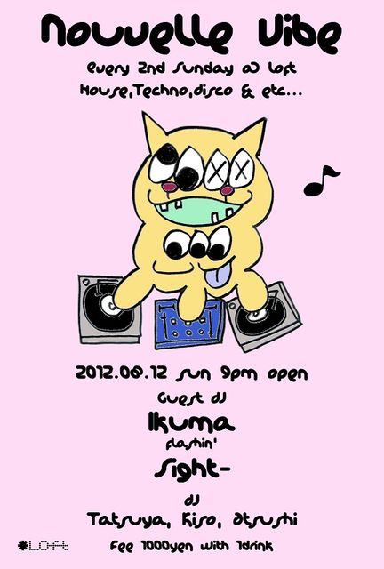 管理人様、告知失礼いたします。 今月のNouvelel Vibeは長野からIkuma&Sight-が登場! みなさんのお越しをお待ちしております。 Nouvelle Vibe 8月12日(日)9pm-till morning @ Loft 上田 house,techno,disco & etc… Guest DJ Ikuma [flashin'] Sight- DJ Tatsuya Kiso Atsushi Fee 1000yen [w/1d]