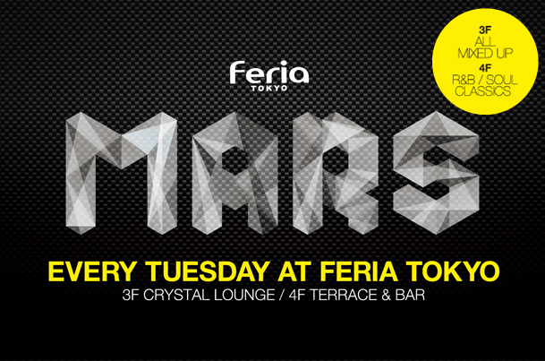 管理人様、告知失礼致します。 MARS@FERIA TOKYO(六本木)にご来場の御客様は全て 女性 \1000/3チケット(Food or Drink) 男性 \1000/2チケット(Food or Drink) でご入場いただけます ※IDチェックがございますので公的に発行された顔写真付き身分証をお忘れなくお願い致します。 六本木にて世界基準のMUSIC、内装でセレブからパーティーピーポーで毎週末800人動員する都内NO.1のLUXURYクラブFERIA TOKYOにて毎週火曜日にNEW PARTY[MARS]がスタート 海外セレブもお忍びでやって来