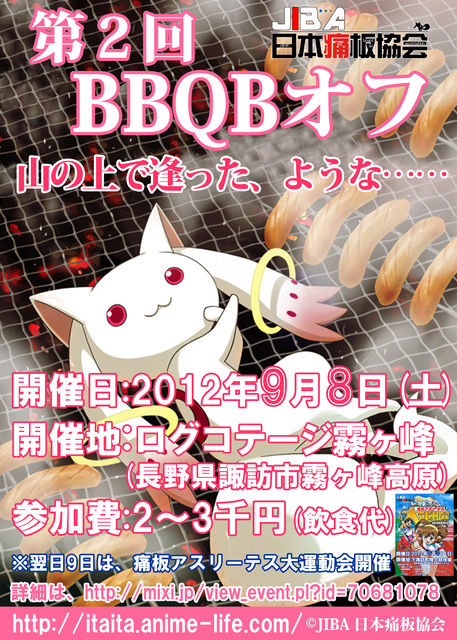 今年ももちろんやります! やるからには色々パワーアップさせたい! とりあえず、手っ取り早く名前だけでもw 中2っぽく『痛板フェス』 何でもありで、みんなが楽しめればいいかなぁとw *2日目は大運動会も開催されますので、 泊りがけで参加してみてはいかがですか? ■【痛板フェス】第2回BBQBオフ 山の上で逢った、ような……【一日目】 たぶん涼しいであろう霧ヶ峰でのBBQ親睦会です。 BBQだけでは終わりませんw 去年は40型TVを持ち込んでアニメ鑑賞会、カラオケ、フリーラインスケート等々 みんな自由に楽しんでま