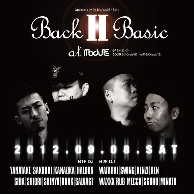 管理人様、告知失礼しますm(_ _)m 9/8(土) BACK 2 BASIC@渋谷module DJ WATARAI DJ YANATAKE DJ SWING DJ SAKURAI 豪華出演!!ぴかぴか(新しい) "リアルなBlack Music"をコンセプトに、DJ WATRAI、DJ YANATAKEという現在のヒップホップシーンを作り上げたと言っても過言ではない2人をレジデントに迎え開催してきたBack2Basic。 3月より奇数月第2土曜レギュラーとしてmoduleに登場!! マスからコアファン層まで、全国にその名を轟かす、DJ SWING、DJ SAKURAIらも新加入し、更にパワーアップ!一晩を通して"BLACK MUSIC"を浴びれ