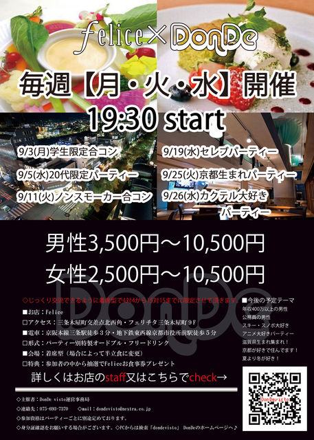 【多ジャンルParty企画】 【少人数限定〜最大30名様】 コミュ http://mixi.jp/view_community.pl?id=5752748 サイト(全開催日程) http://dondevisto.web.fc2.com/ 少人数から開催のパーティー 大勢だとみんなと仲良くなるのも難しい 少人数だと会場の全員が友達になれそう