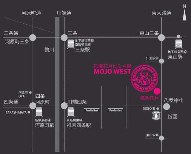 2012年9月2日(日) 【イベント名】 大人のパーティーvol.3 〜音楽のタイムカプセルを開けよう〜 会場/京都MOJO WEST http://ip.tosp.co.jp/i.asp?I=gizzy_live&P=10 京都市東山区祇園町 北側323 祇園会館4F TEL:075-533-6470 ※祇園円山公園正面斜め向かい付近 祇園よしもとが1Fにありますがそこからは入場 出来ませんので横手のエレベーターより四階へお越し下さい。 ●最寄駅● ◆京阪本線 祇園四条駅 徒歩10分 ◆阪急京都線 河原町駅 徒歩15分 ◆京都地下鉄東西線 三条駅 徒歩15分 OPEN/15:00 START/15:30