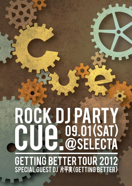 【cue.】とは、ライブ感覚で参加できる邦楽を軸にしたROCK DJ PARTY。福岡県拠点に開催。ライブ感覚で参加できるため初心者の方や一人参戦の方も多い。夕方から終電の時間帯での開催なのでどなたでも参加できる。途中から来たり、途中で抜けても問題ない。楽しみ方は自由で好きな音楽で踊ったり、お酒やソフトドリンクを飲みながら会話を楽しんだり、ゆったり音楽を聴いたりと様々な楽しみ方ができるイベントである。