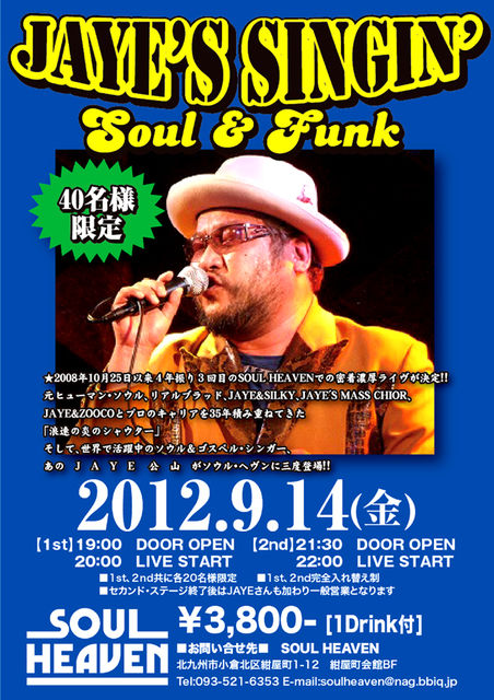 ★2008年10月25日以来、約4年振り3度目の 'SOUL HEAVEN' での濃厚密着型ライヴが決定!!