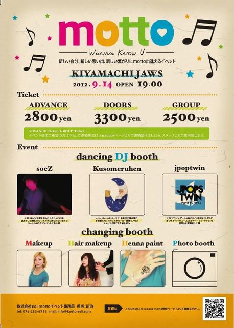 〜新しい自分、新しい思い出、新しい繋がりにmotto出逢えるイベント〜 edi★夏のコラボ企画"motto" メインはfacebookで"もっと"繋がろう!!という企画です (*´v`*)人(*´v`*)ノ もちろん、facebookをやってない方も大歓迎 ヘア&メイクアップブース いつもとは違った自分に変身 ちょこっと髪型やメイクを変えるだけで印象ってだいぶ 変わってきますよね もちろん、女子だけでなく、男の子もかっこよく 変身出来ちゃいます 2週間程で消える「へナタトゥー」も、 露出の多い夏